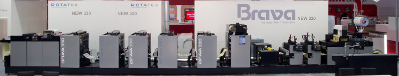 Il prodotto di punta che ROTATEK esporrà a Labelexpo è la nuova semi-rotativa offset BRAVA 330 per le etichette autoadesive che si adatta perfettamente alle piccole tirature come quelle per vini, oli e liquori. La macchina si affianca alla maggiore offet BRAVA 450 che invece può lavorare indipendentemente sia in rotativa che in semi-rotativa, così è utilizzabile sia per medie che per lunghe tirature con uno sfruttamento molto economico. Entrambi i due modelli offset BRAVA 330 e 450 includono tutti gli altri sistemi di stampa addizionale e di finutura in-line come descritto più sopra, per una valida produzione di alta qualità con valore aggiunto.