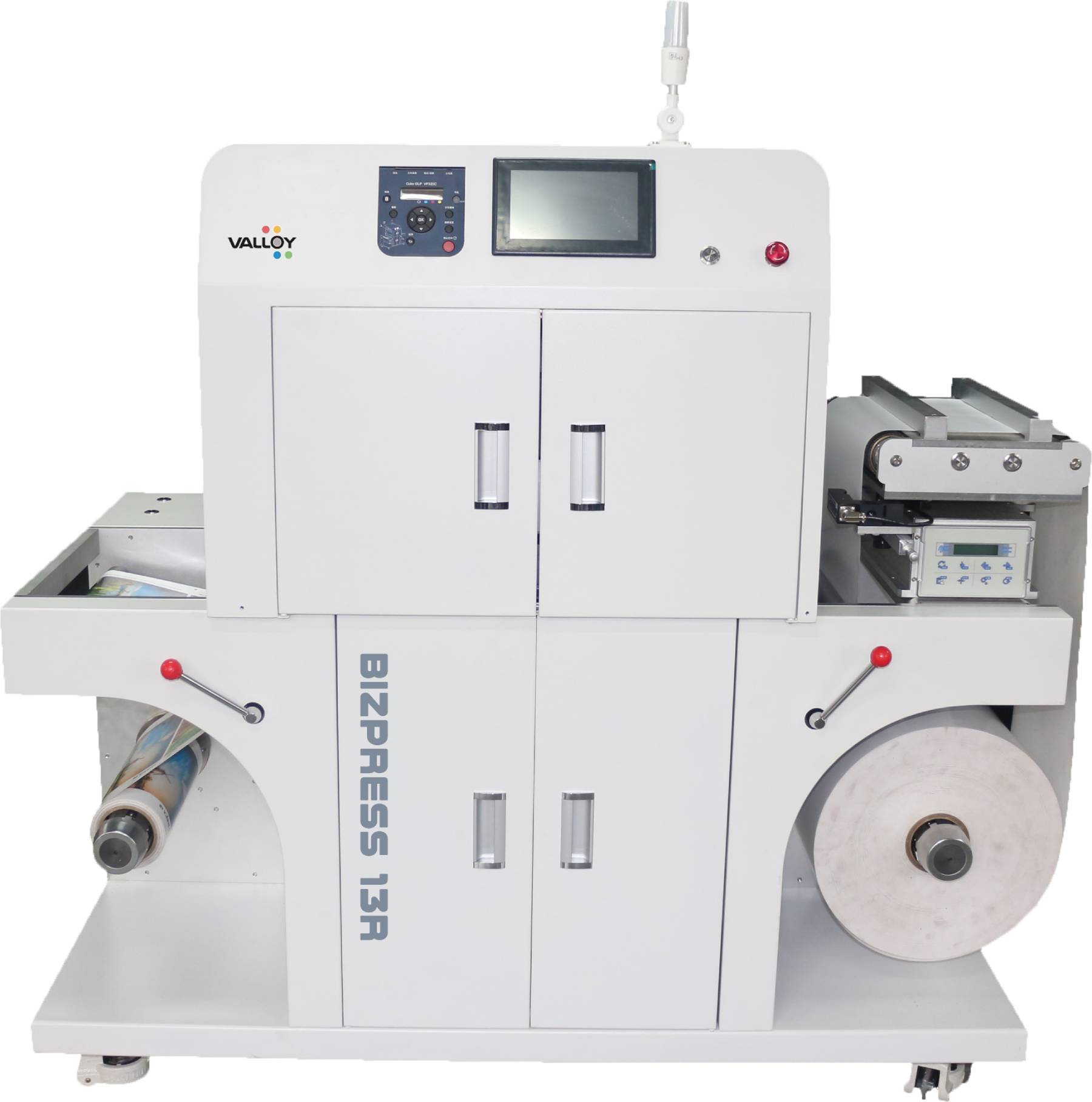 BIZPRESS 13R della Valloy, utilizza il motore di stampa più avanzato di produzione a LED, sviluppato in cooperazione con Fuji-Xerox con tecnologia IReCT (super accurate registration) e EA-HG Toner (sharper image with low-tempmelting). Ora questa stampante è diventata il punto di svolta della produzione ad alta qualità, alta efficienza e bassi costi di gestione. La maggior parte dei fornitori di servizi di stampa ed etichettifici ne avranno bisogno per migliorare la propria attività di stampa digitale per basse tirature. Grazie alla velocità di stampa di 7,26 m/min può gestire facilmente anche 1000 m di lavoro. La risoluzione 1200×2400 DPI garantisce colori di alta qualità e molto saturi a confronto con altre stampanti del suo genere fondamentalmente a 600×600 DPI. BIZPRESS 13R può stampare supporti con spessori da 50 a 250 micron (e per alcuni casi anche sotto i 50 micron), PET, PP, PE e persino pellicole in PVC oltre che il Tyvek e il Teslin. Lo ionizzatore ad alta tensione integrato previene il problema statico. Il sistema di raffreddamento incorporato e il meccanismo di fusione istantaneo a bassa temperatura, consentono un’ampia gamma di compatibilità dei supporti.