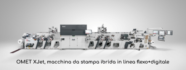 PG: Prima ha accennato al digitale: un concetto molto simile di processi di stampa ibridi è la combinazione flessografia/digitale che ottimizza i costi senza sacrificare la qualità. Dal 2017 collaboriamo su base di reciproca esclusività con Durst per integrare i loro motori di stampa RSC in una macchina che abbiamo chiamato OMET XJet. Questa macchina da stampa è destinata al mercato delle etichette adesive ed alle shrink sleeves, grazie alla tecnologia inkjet da 1200×1200 dpi con gocce da 2pl, all’efficienza dei costi delle lastre flessografiche, ed al converting in linea.